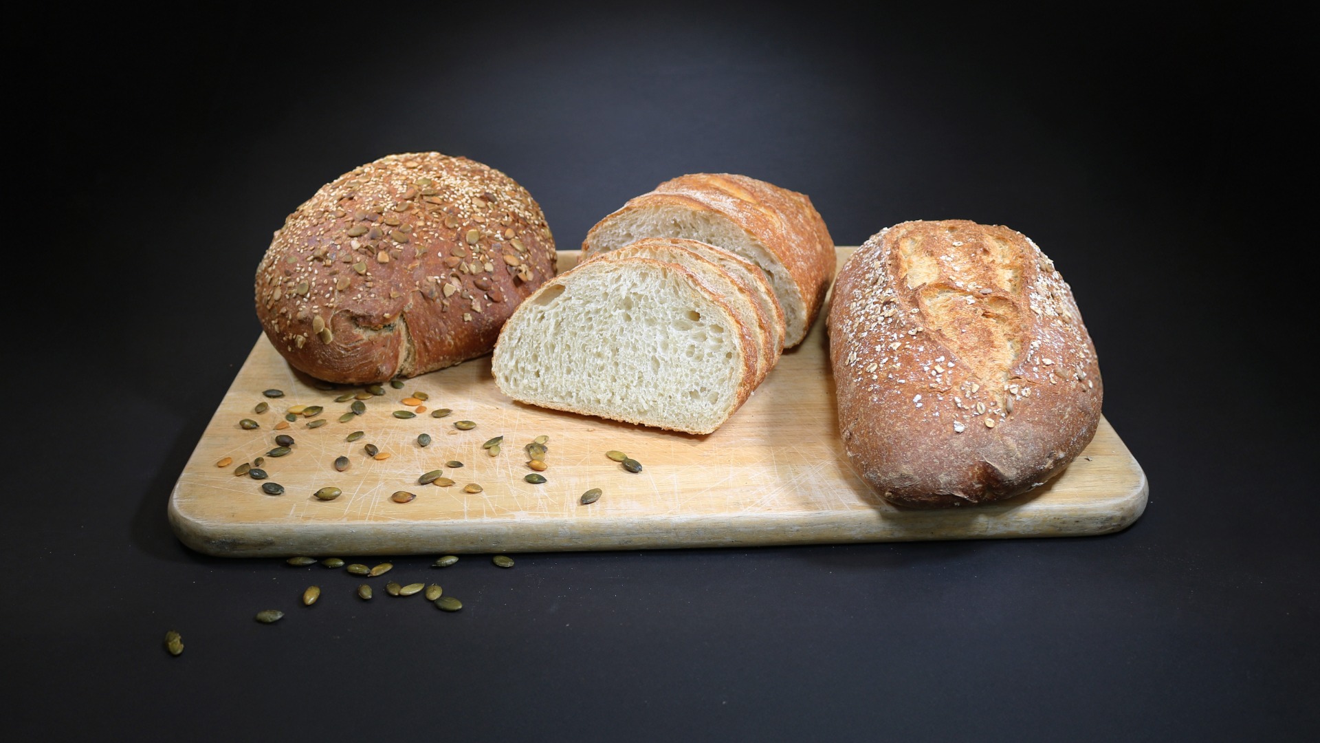 Super lækre økologisk koldhævet surdejs helbrød, pakket i en mix kasse med 3 x 3 stk.