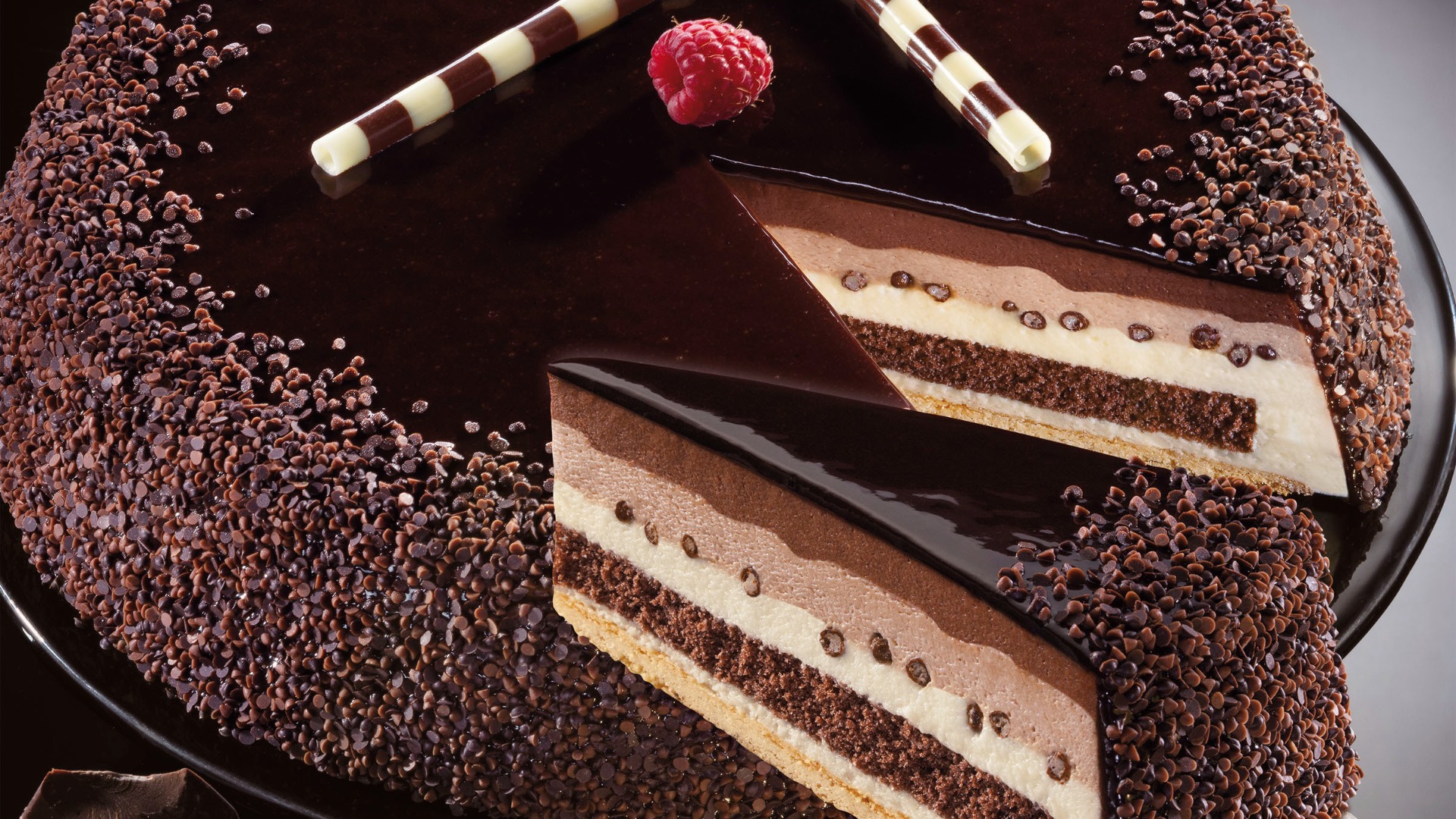 Luksus chokolademoussekage med 3 slags mousse