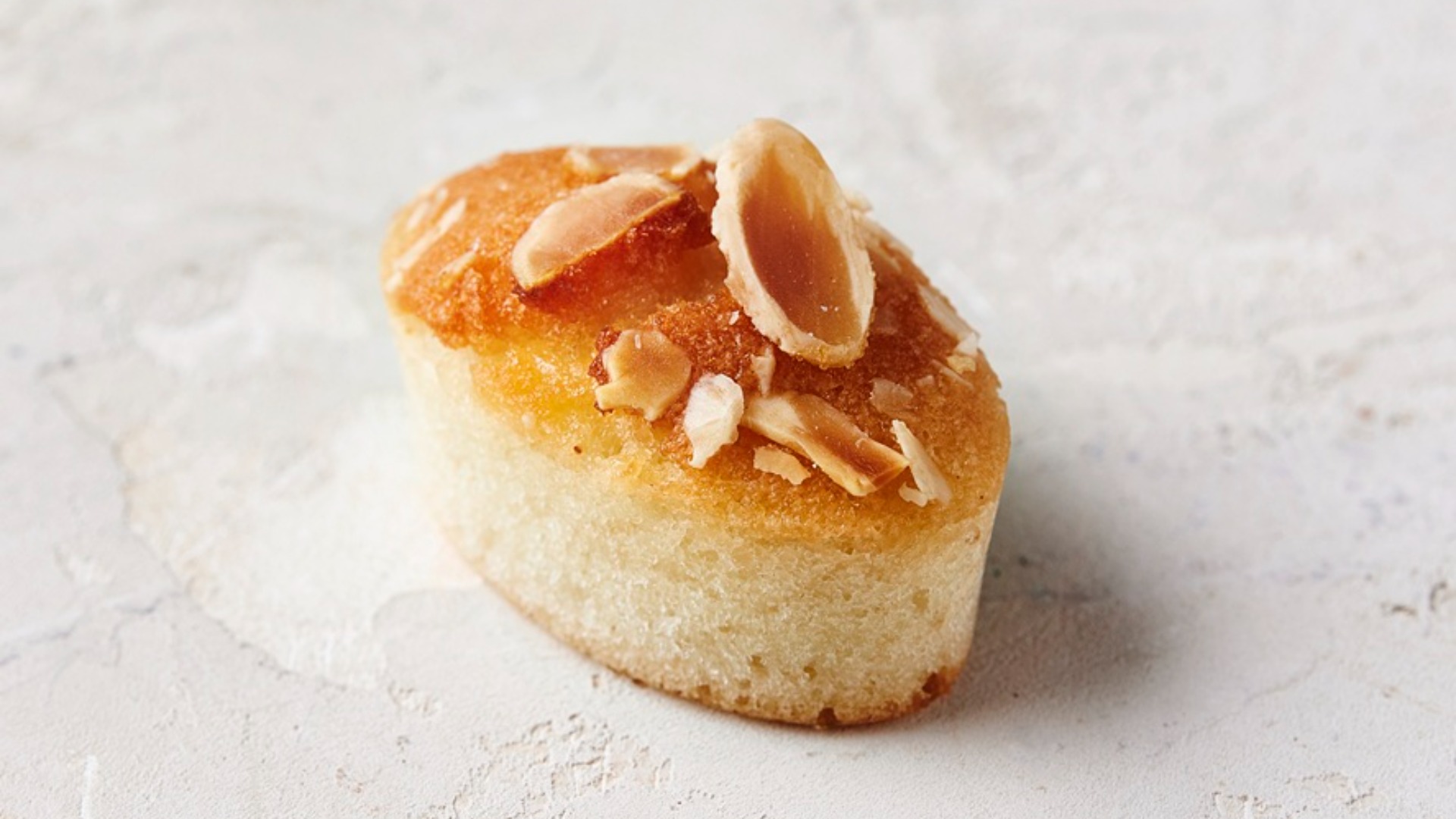 Den lille mandelkage har en blød, saftig krumme med klar mandelsmag og en let karamelliseret overflade, der giver et fint, sprødt bid. De ristede mandelflager tilfører både aroma og struktur, så hver mundfuld føles ren og velafbalanceret. Den stabile konsistens gør kagen let at håndtere fra frost til servering