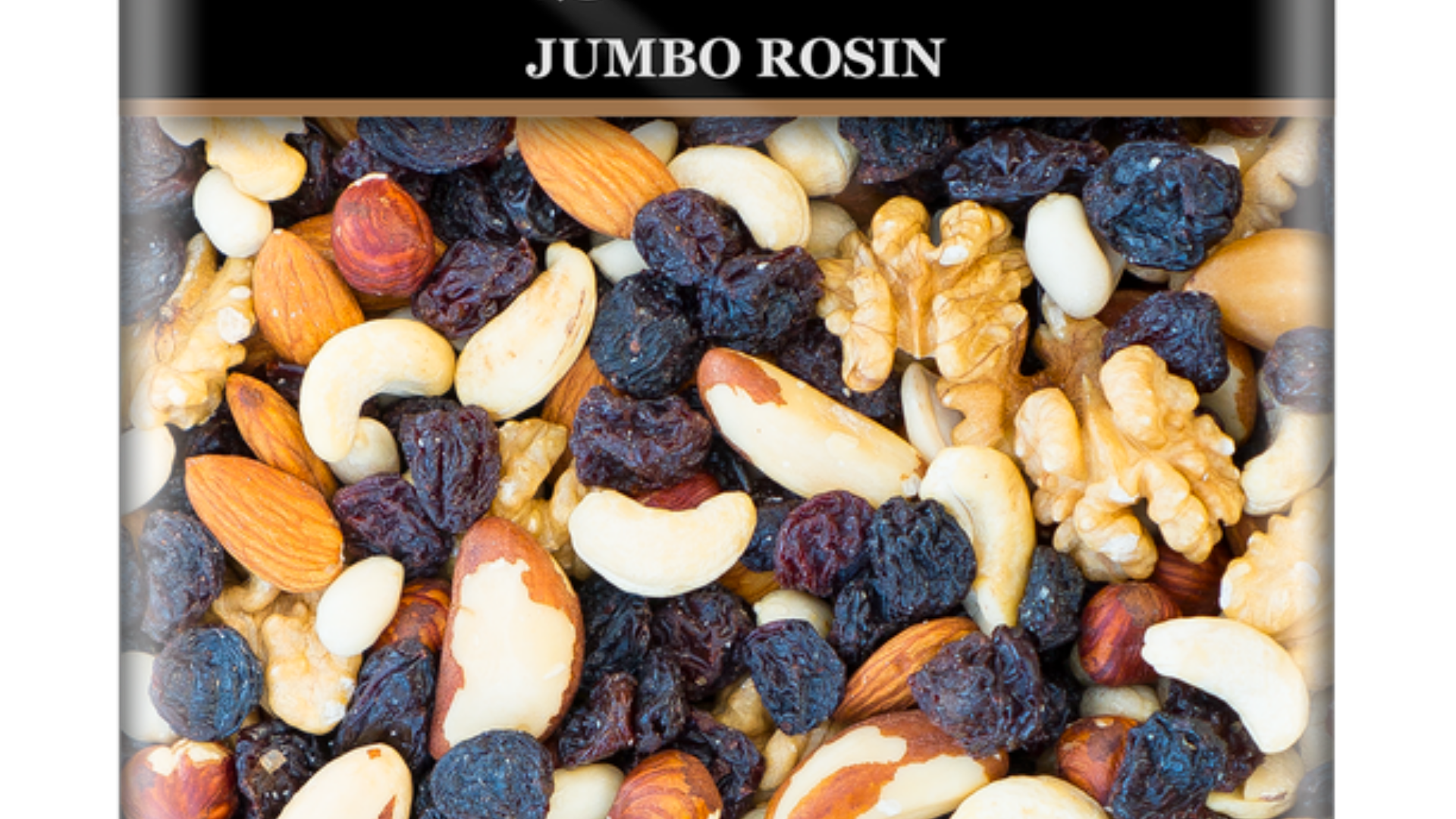 Giv jeres retter et ekstra løft med vores nøddemix, hvor nøje udvalgte nødder møder store, sødmefulde jumbo-rosiner. I får luksuriøse Nonpareil-mandler, cashewnødder, håndknækkede chilenske valnødder, hasselnødder og paranødder – alle udvalgt for top kvalitet, tekstur og smag.