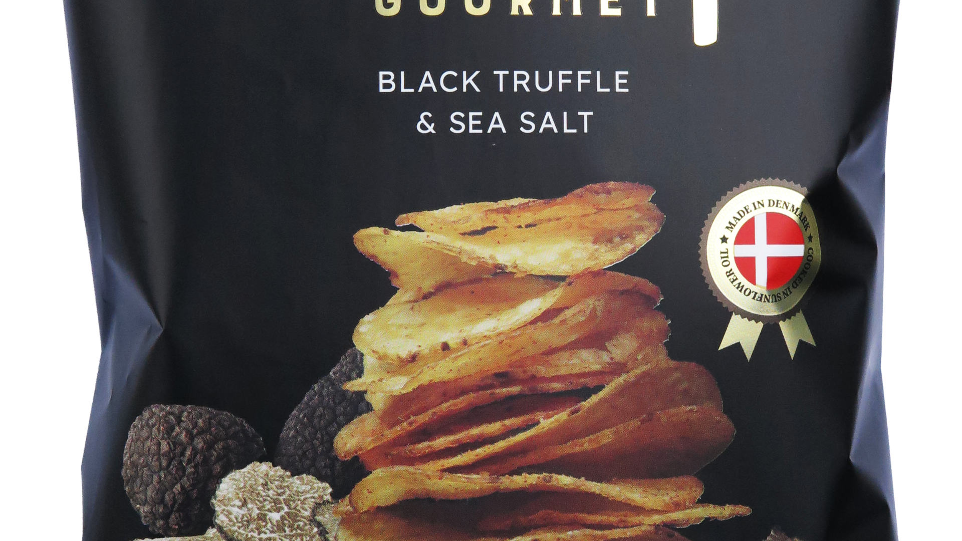 Lækre kettle cooked chips med dejlig afstemt smag af sort trøffel og havsalt
