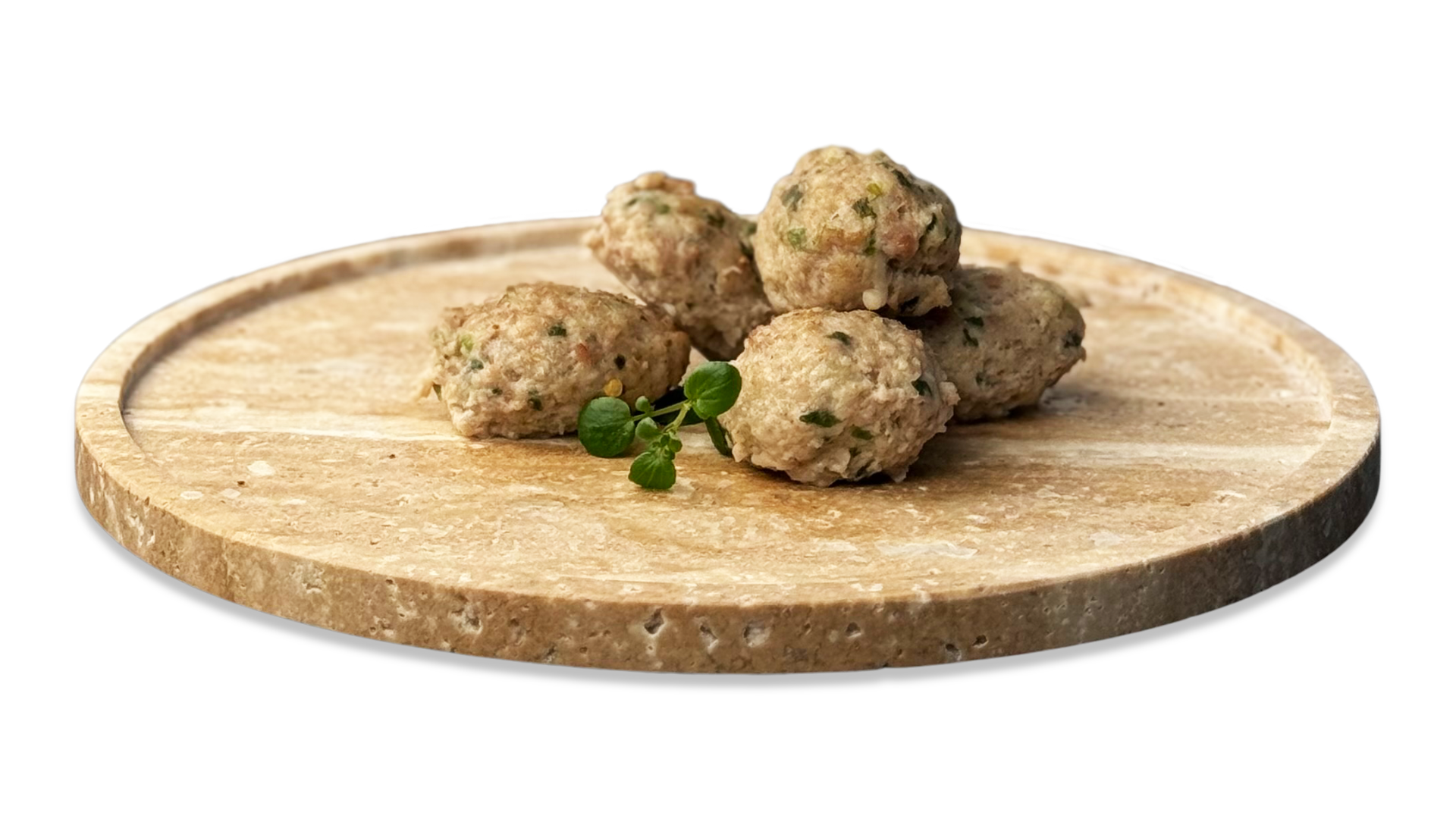 Nr. Onsilds asiatiske kødbolle er udviklet med kraftig inspiration fra asien, vi tilsmagt den med 5 spice, ingefær, hvidløg og chiliflager. varmen og friskheden komplimenteres af sødme fra masser af forårsløg. Tydelig styrke af chili er karakteristisk for det asiatiske køkken, men denne varme udligner sig når man smager den i den færdige ret. Farsen er lavet af dansk kylling og håndrørt for at opnå en god tekstur. Den egner sig perfekt til bowls, sticky meatballs eller som element i asiatiske nudelretter og supper.