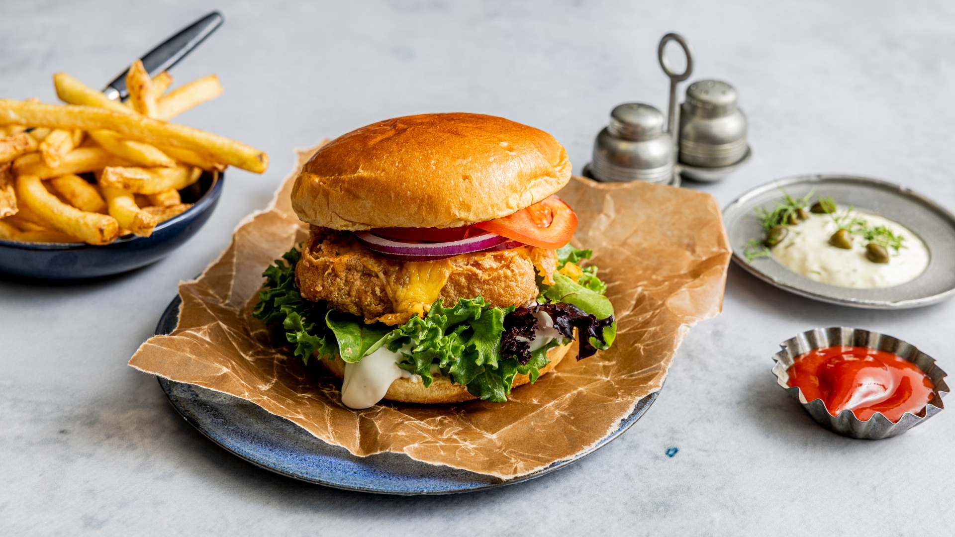 Nyd en sprød fiskeburger, inspireret af den elskede Fish’n chips tradition. Lavet af 100% MSC-certificeret Alaskasej filet, dækket af en gylden, sprød dej, der giver et perfekt knas i hver bid. Server denne fiskeburger med pommes frites og en simpel dip for en komplet smagsoplevelse.