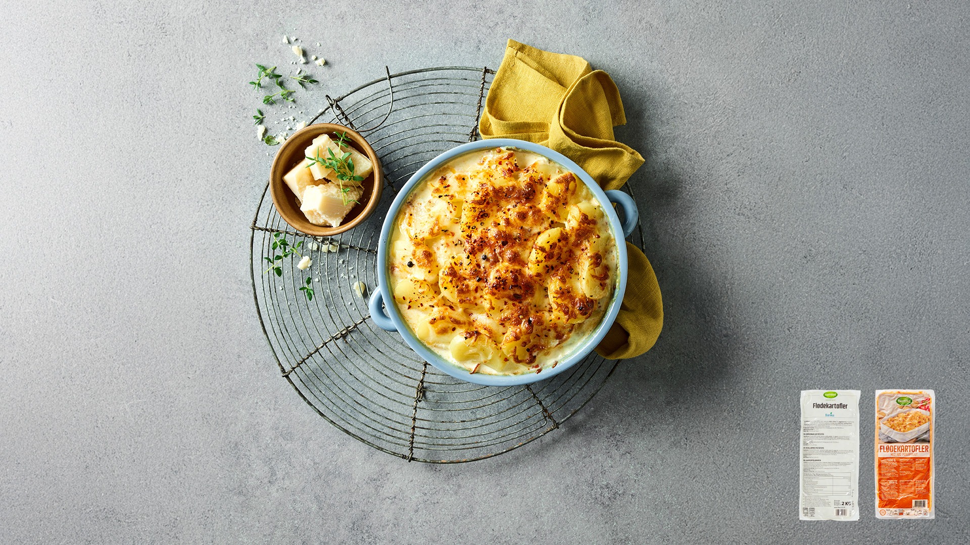 Flensted, os fra den 7.kartoffelrække, vi holder til i den Vestjyske muld - omgivet af kartoffelmarker. Her følger vi årstidens skiften med klargøring af marker, lægning af kartofler og høst - og her har vi opbygget et mangeårigt og godt samarbejde, med mange dygtige danske kartoffelavlere. De fleste af dem dyrkes inden for en radius af kun 30 kilometer fra vores kartoffelfabrik, som ligger i Skovlund Vestjylland. I dag tilbyder Flensted et bredt sortiment af convenience kartofler og altid med udgangspunkt i ærlige råvarer.